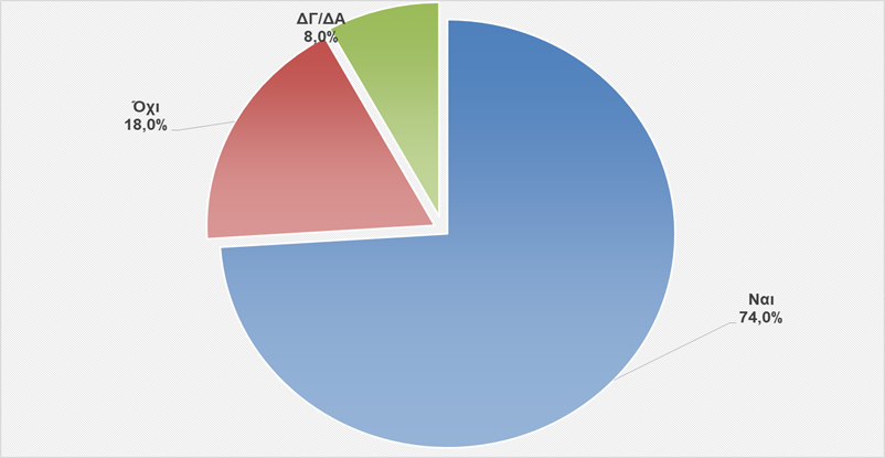 Στην παραπάνω ερώτηση, το 74% απάντησε θετικά, το 18% ήταν αρνητικό και , το 32,7%, ενώ το υπόλοιπο 8% δεν έδωσε κάποια απάντηση.