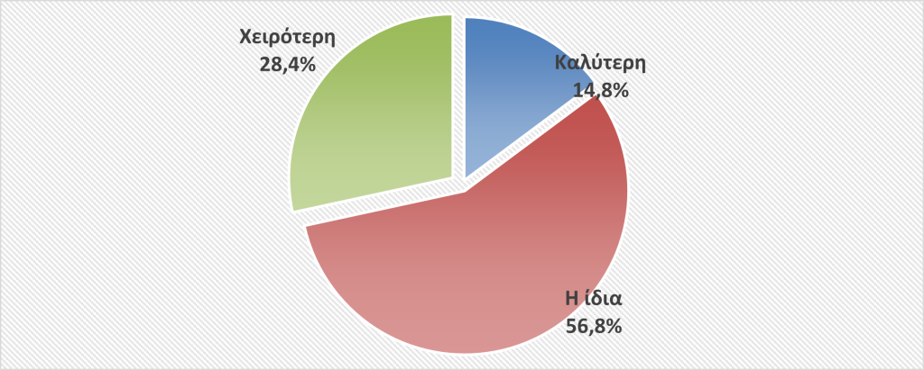 Στην ερώτηση πώς κρίνουν οι συμμετέχοντες την κατάσταση της επιχείρησής του, το 59,8% την χαρακτήρισε ικανοποιητική, το 25,8% καλή, ενώ το 14,4% κακή.