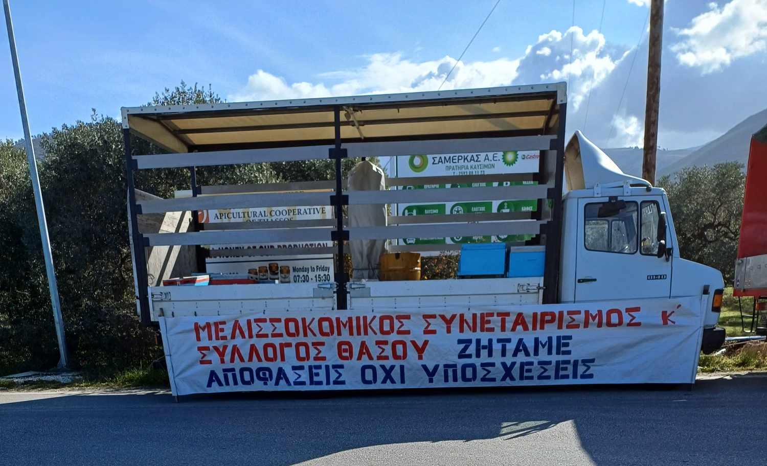 Το μπλόκο στήθηκε κατόπιν πρόσκλησης του Μελισσοκομικού Συνεταιρισμού Θάσου, με σκοπό να αναδειχτούν τα προβλήματα των ελαιοπαραγωγών, μελισσοπαραγωγών, κτηνοτρόφων και αλιέων του νησιού.