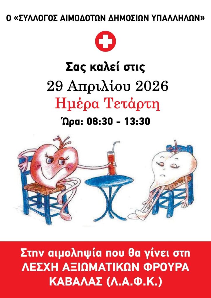 Αιμοδοσία, στις 29 Απριλίου, από τον Σύλλογο Αιμοδοτών Δημοσίων Υπαλλήλων