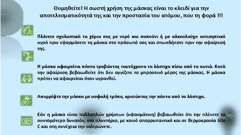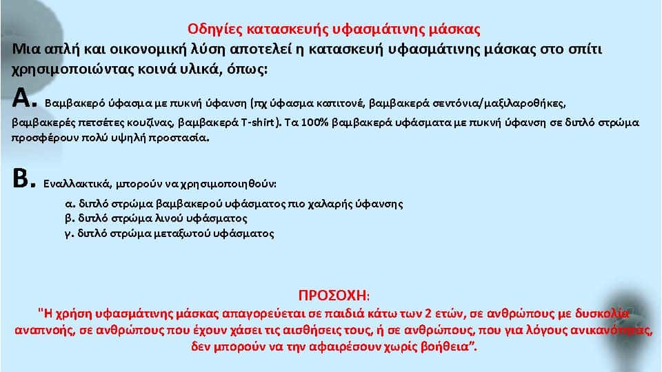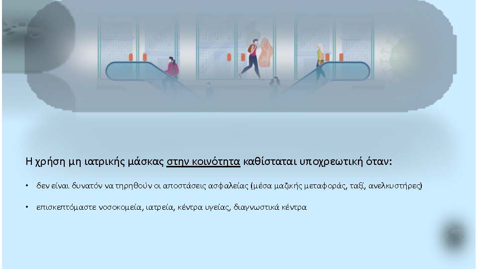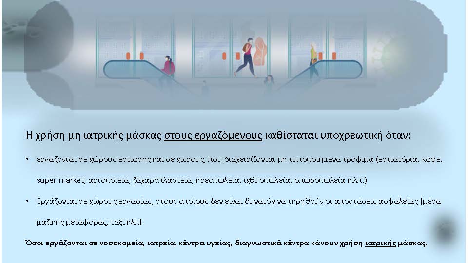 Η χρήστη της μάσκας είναι υποχρεωτική για όσους χρησιμοποιούν ανελκυστήρες, μέσα μαζικής μεταφοράς, ταξί και επισκέπτονται νοσοκομεία και διαγνωστικά κέντρα.