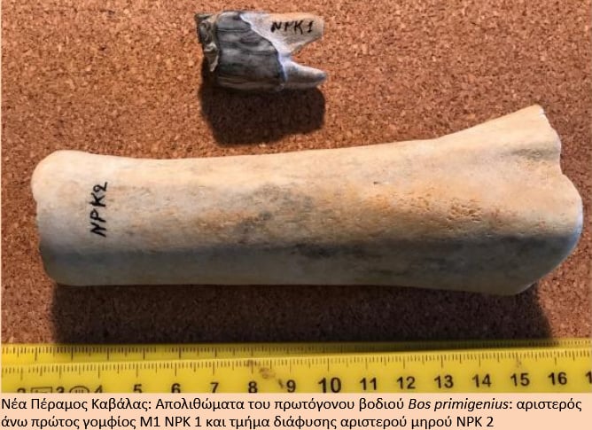 Σημαντική ανακάλυψη στην παραλία της Νέας Περάμου έγινε από τον Πρόεδρο της Κοινότητας Γεράσιμο Ζουμπλιό: δύο απολιθώματα χιλιάδων ετών (ένας γομφίος και ένα τμήμα οστού) που δηλώνουν την παρουσία του προϊστορικού βοδιού (Bos primigenius) στην περιοχή.