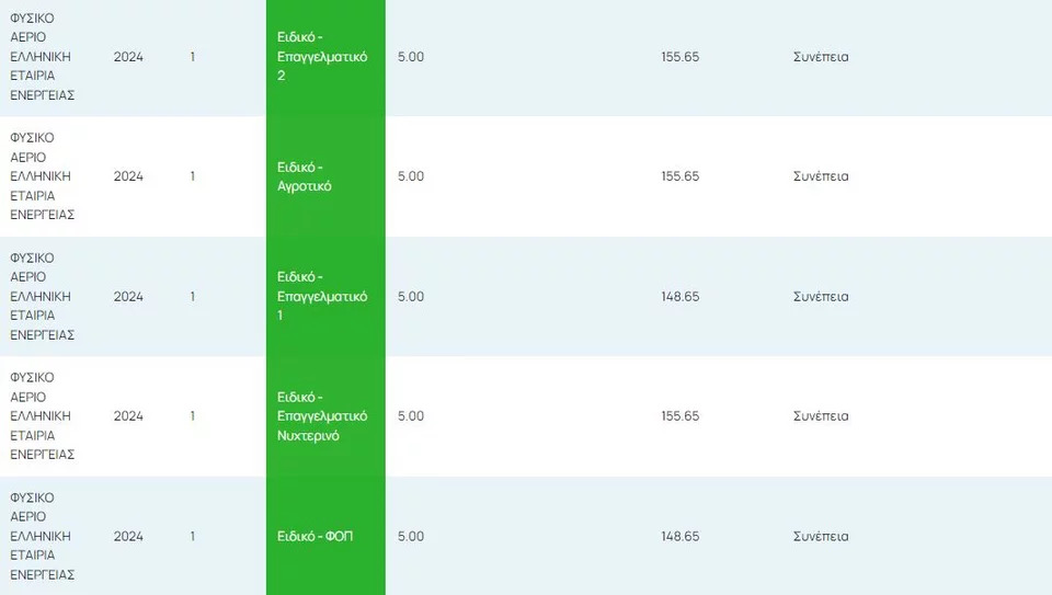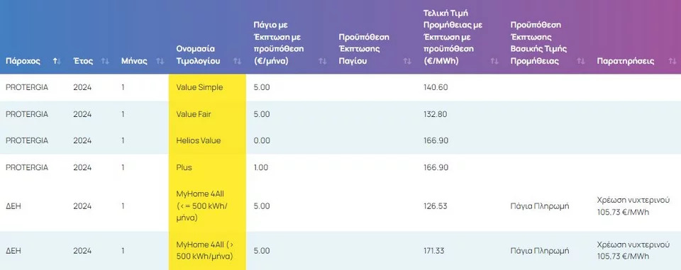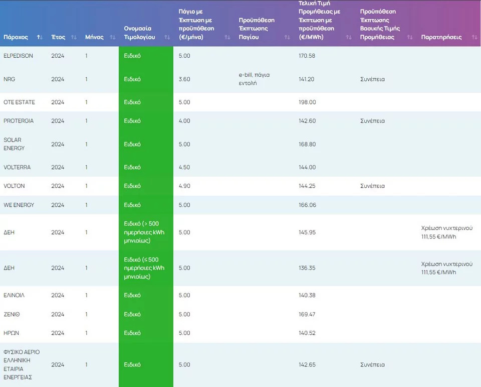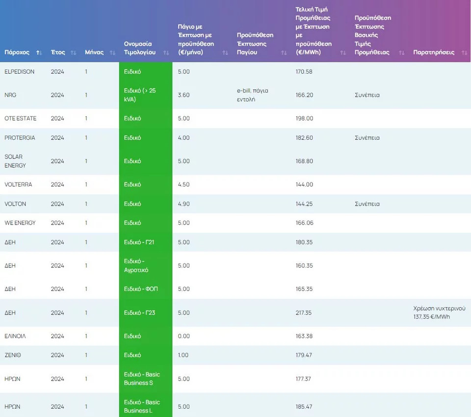 Συνοπτικά, οι τιμές ανά εταιρεία στο πράσινο οικιακό τιμολόγιο: