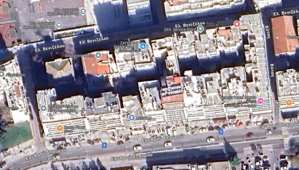 Ελευθερίου Βενιζέλου – Βότση – Ερυθρού Σταυρού – πάροδος Ελευθερίου Βενιζέλου – Ελευθερίου Βενιζέλου.