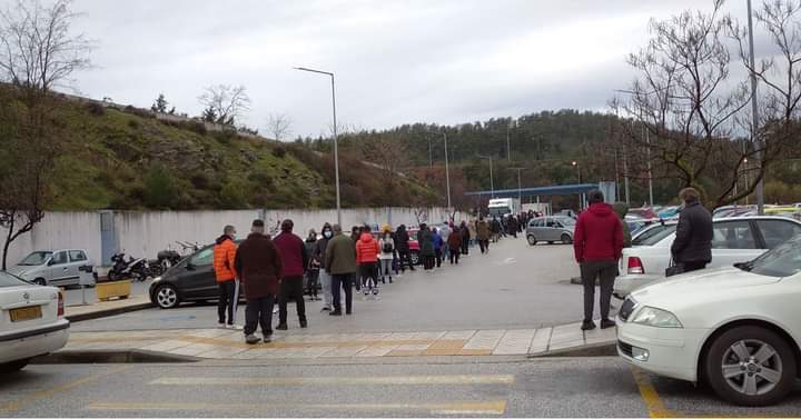 Η εικόνα από το Γενικό Νοσοκομείο Καβάλας, με τους δεκάδες εμβολιασμένους κατά του κορωνοϊού SARS-COV-2 συμπολίτες να περιμένουν στην ουρά (μέσα στο ψιλόβροχο) για να εξεταστούν στην κινητή μονάδα του Γενικού Νοσοκομείου Καβάλας που διενεργεί Rapid και PCR tests, έχει ήδη κάνει το γύρο των social media και μόνο που δεν έχει προκαλέσει κύματα ενθουσιασμού στους ανεμβολίαστους.
