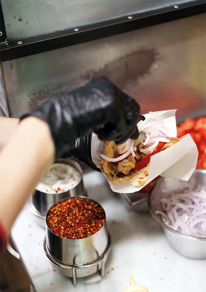 Μικρά, με διάφορα είδη κρέατος μέσα σε φουρνιστό ψωμάκι, αποτελούν αγαπημένο έδεσμα των ντόπιων από το πρωί έως το βράδυ. Στο Σπέσιαλ, το οικογενειακό μαγαζί της Χαρούλας Κότση, φτιάχνουν χειροποίητα σουτζουκάκια. Η συνταγή έχει έρθει από τη Μικρά Ασία, τόπο καταγωγής του πατέρα της. (Φωτογραφίες: Κωνσταντίνος Τσακαλίδης).
