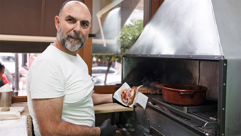 Ο Κώστας και η Ειρήνη Κουτρουλού είναι ιδιοκτήτες του διάσημου σουβλατζίδικου Κούλης. Διατηρούν τα σουτζουκάκια στη γάστρα με λάδι, για να μένουν ζουμερά.