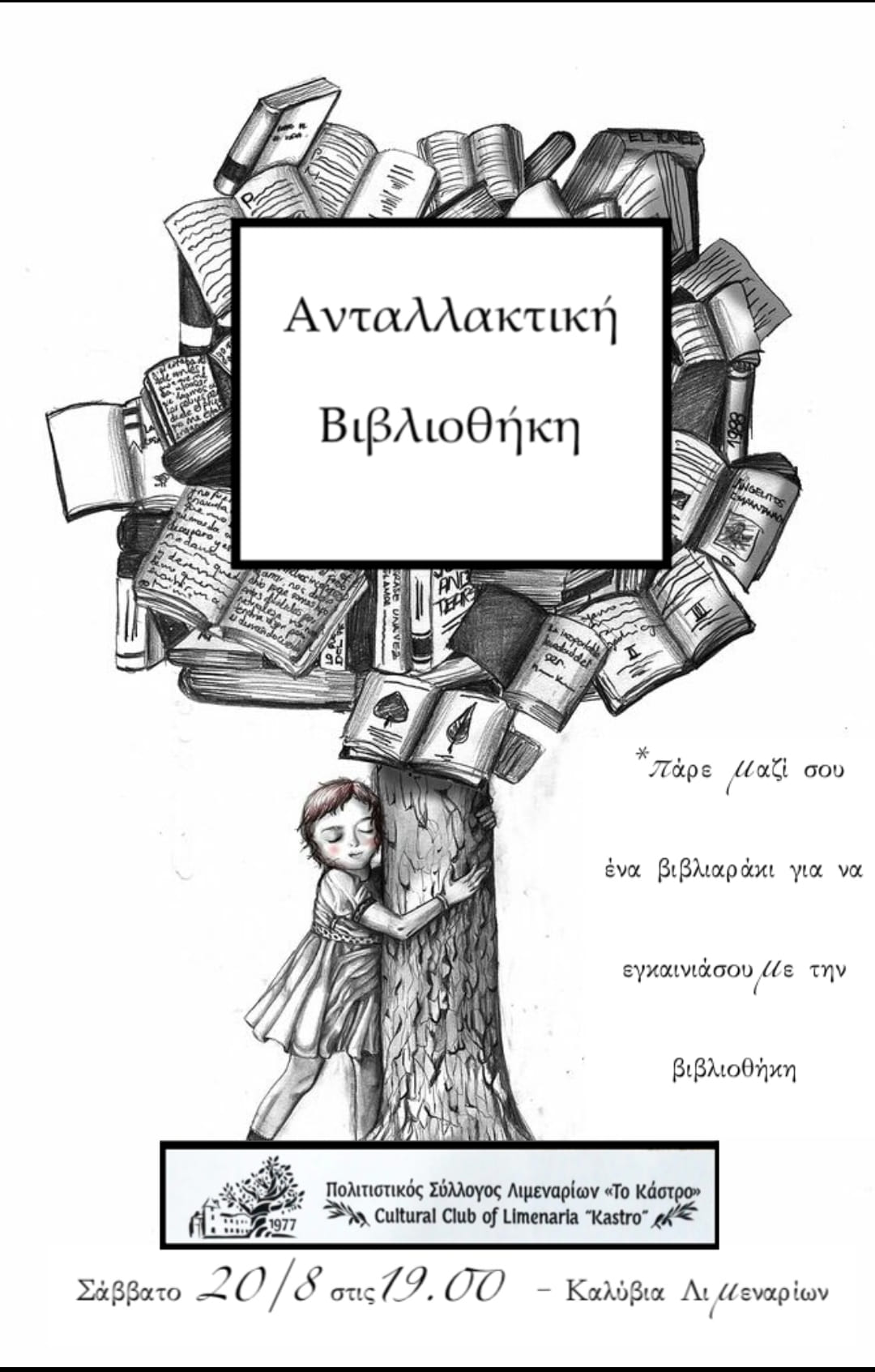 Σάββατο 20/8/22 στις 7:30 στην παιδική χαρά στα Καλύβια Λιμεναρίων θα τοποθετήσουμε την πρώτη ανταλλακτική βιβλιοθήκη.