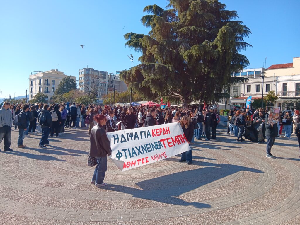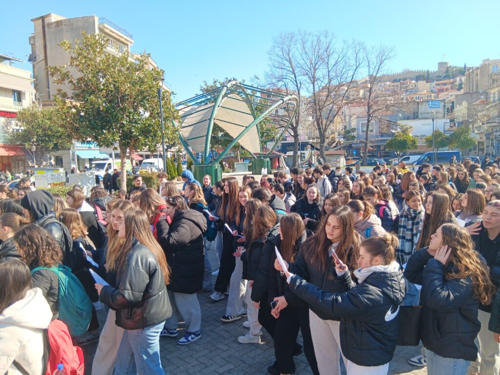Αρκετά ενθαρρυντική, αν λάβουμε υπόψη και την ημέρα και ώρα διεξαγωγής του, ήταν η συμμετοχή μαθητών και μαθητριών στο συλλαλητήριο που διοργανώθηκε το μεσημέρι της Παρασκευής 7 Φεβρουαρίου 2025 στην κεντρική πλατεία της Καβάλας με βασικό αίτημα να αποδοθεί δικαιοσύνη για την τραγωδία των Τεμπών, και σύνθημα «Δεν έχω άλλο οξυγόνο».