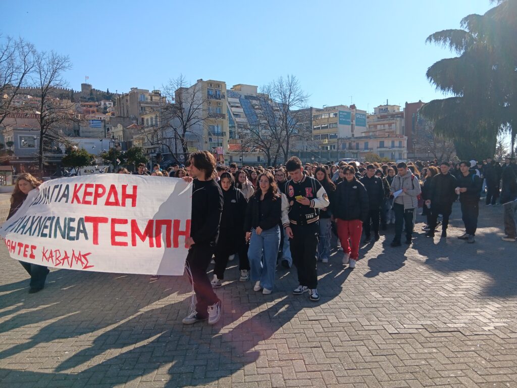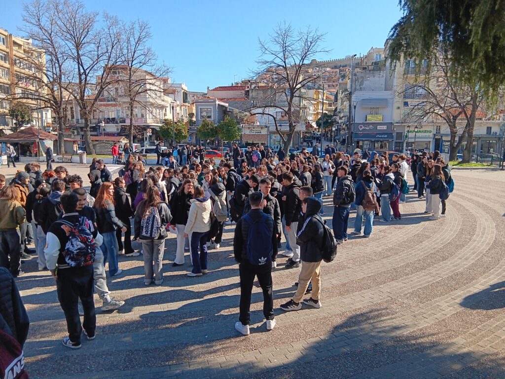 Μετά από μια σύντομη ομιλία από εκπρόσωπο των φοιτητικών συλλόγων του παραρτήματος Καβάλας του ΔΠΘ, η συγκέντρωση των μαθητών ολοκληρώθηκε με πορεία στους δρόμους της Καβάλας.