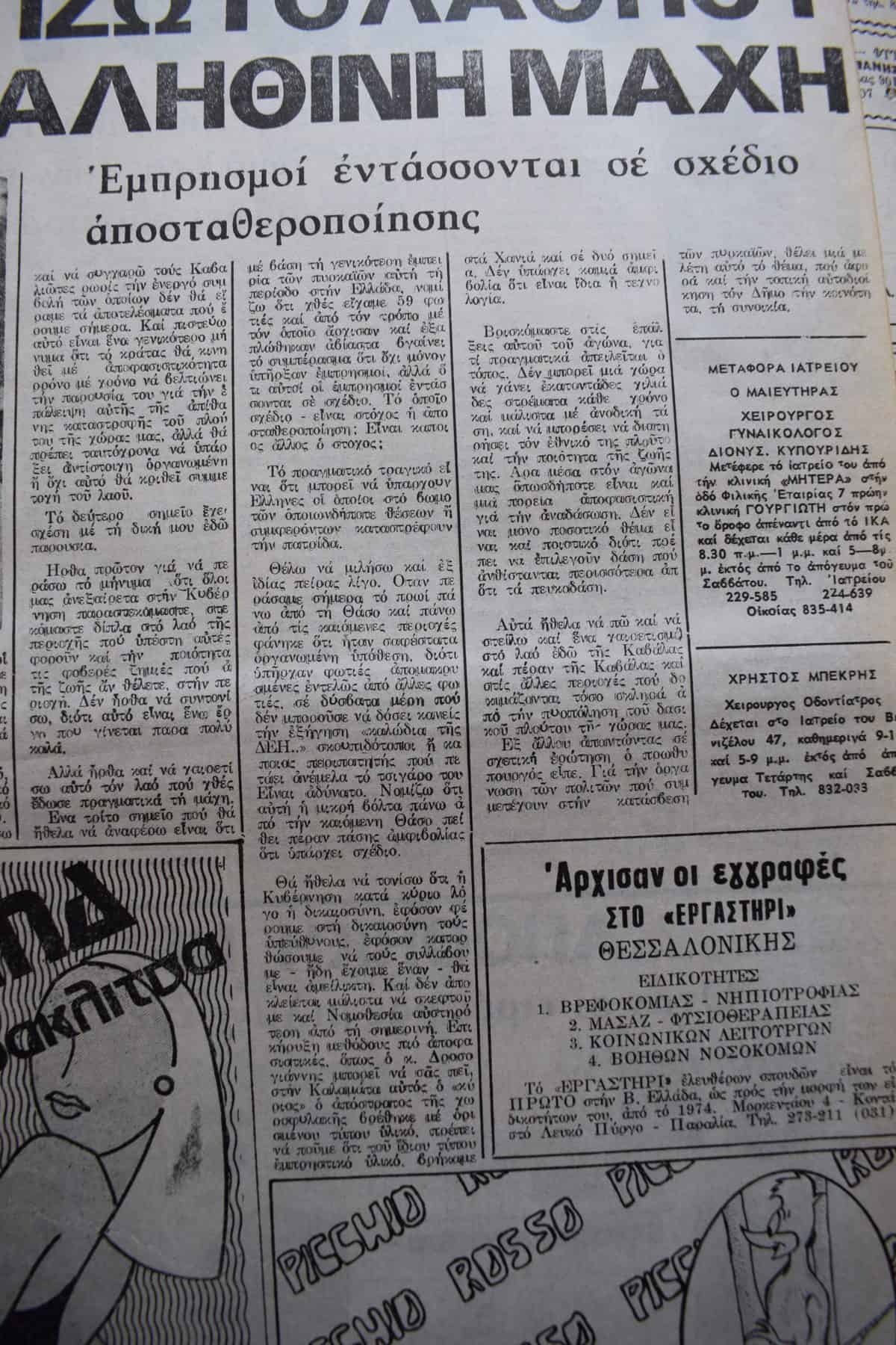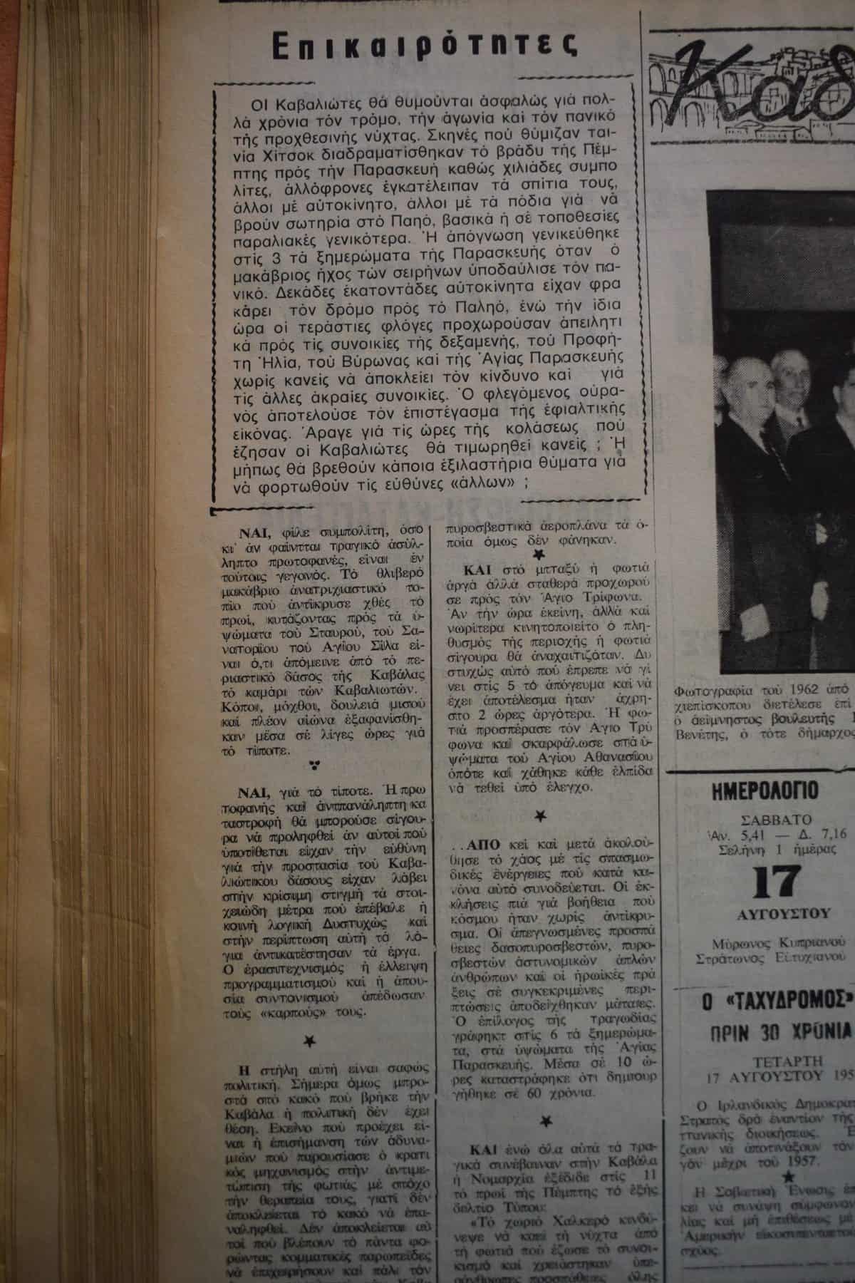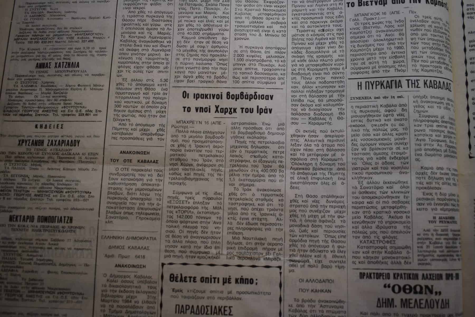 Την ημέρα εκείνη ξέσπασε, όπως αναφέραμε, η μεγάλη πυρκαγιά της Καβάλας. Οι εφημερίδες είχαν ήδη εκδοθεί λίγες ώρες νωρίτερα, ενώ εκείνα τα χρόνια δεν υπήρχε το Internet και οι ιδιωτικοί τηλεοπτικοί και ραδιοφωνικοί σταθμοί (μόνο η ΕΡΤ και η ΕΡΑ).