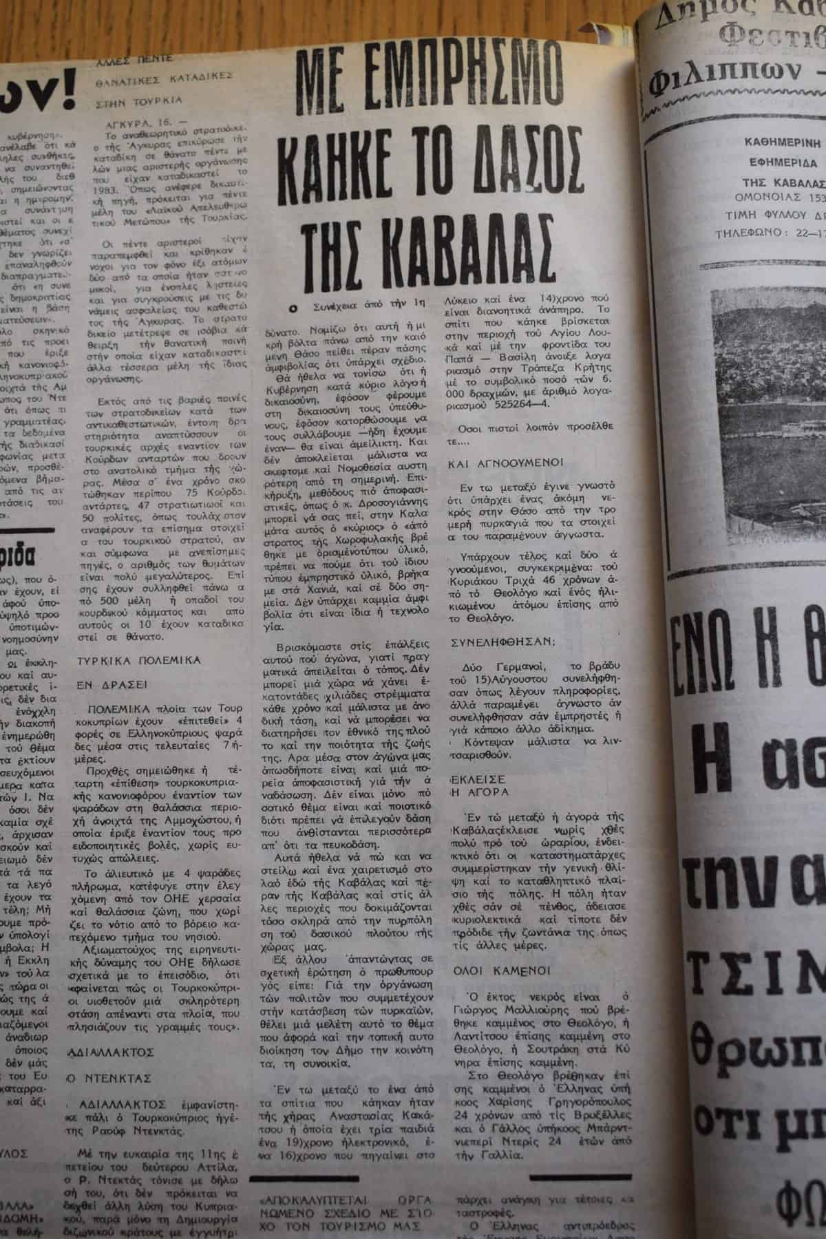 β) ο ΤΑΧΥΔΡΟΜΟΣ μιλάει για “Ώρες τρόμου, αγωνίας και πανικού” και χιλιάδες Καβαλιώτες που εγκατέλειψαν την πόλη -ενώ δεν λείπουν, φυσικά, και οι επικρίσεις εναντίον της κυβέρνησης του ΠΑΣΟΚ (ας μην ξεχνάμε την γνωστή από παλιά δεξιόστροφη τάση του ΤΑΧΥΔΡΟΜΟΥ)