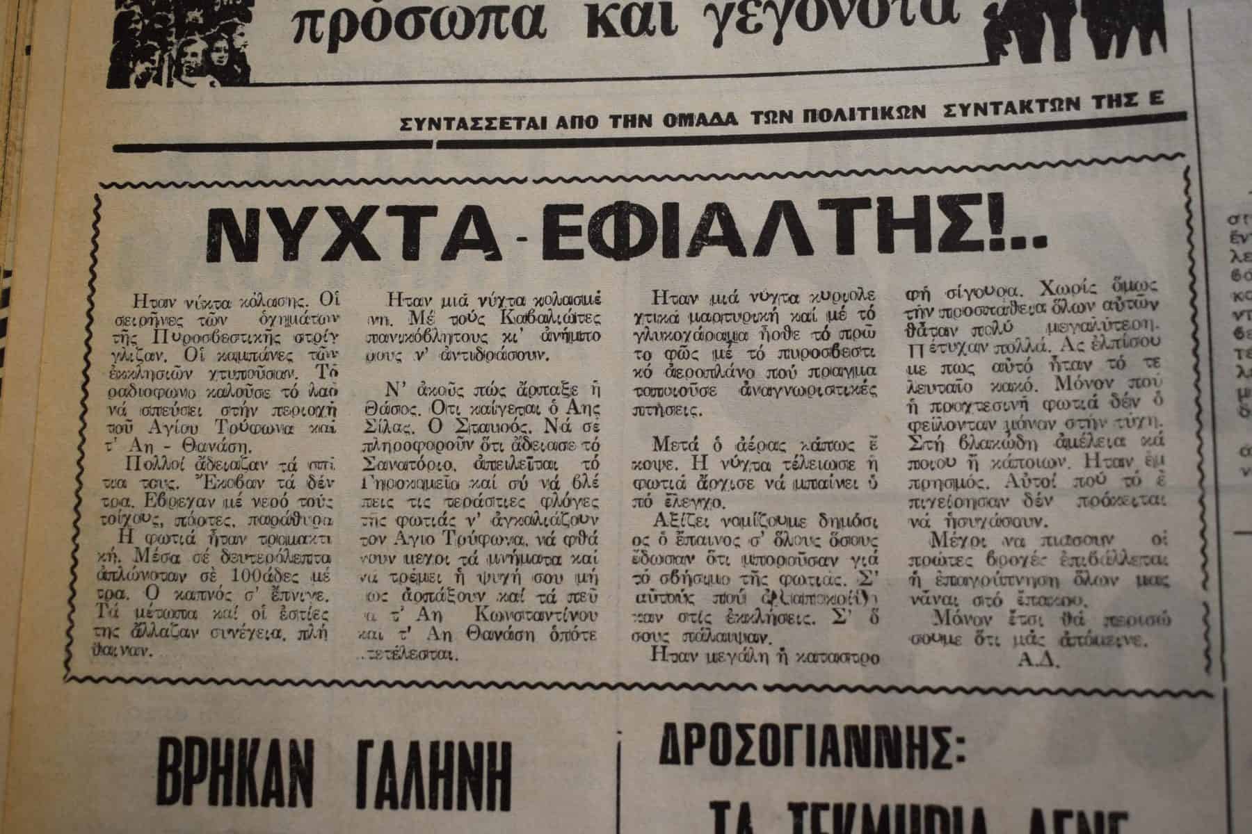 δ) η ΕΒΔΟΜΗ μιλάει για “Τρόμο στην πόλη” και για “Μια νύχτα κόλαση”