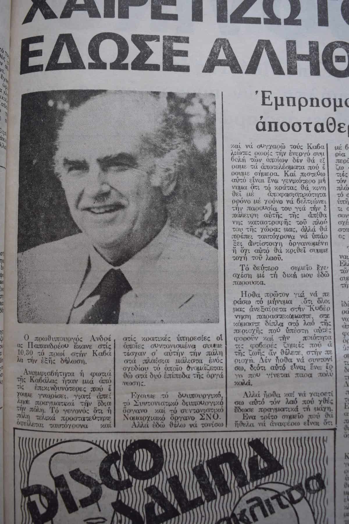 Μάλιστα, σε άλλο σχόλιο της ίδιας εφημερίδας γινόταν μνεία σε δηλώσεις του Α. Παπανδρέου το 1981, με τις οποίες ζητούσε την παραίτηση του τότε πρωθυπουργού Γεωργίου Ράλλη -την οποία κατηγορούσε, εκείνη την εποχή, πως “ούτε τον δασικό πλούτο της χώρας δεν μπορεί να προστατεύσει”-, ενώ το 1985 μιλούσε για “αποσταθεροποίηση” και “μυστικό σχέδιο αγνώστων που κατακαίνε την Ελλάδα”