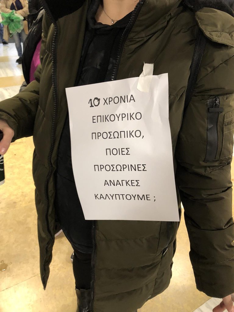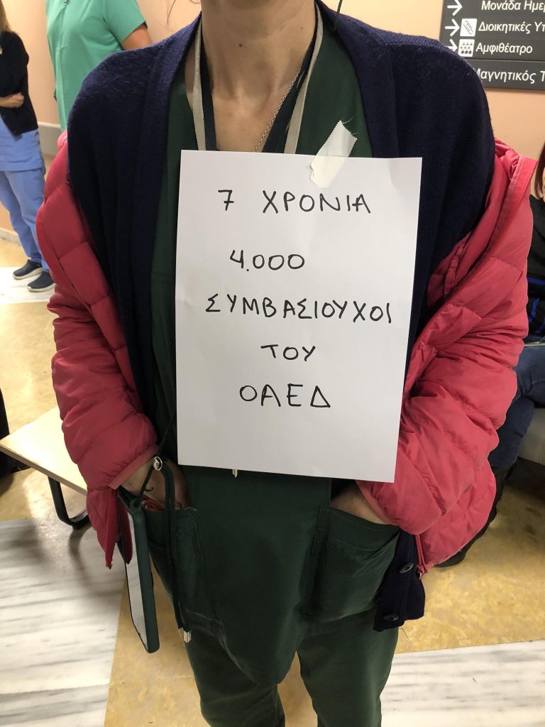 Το Νοσοκομείο λειτουργεί με πάνω από το 50% των εργαζομένων να εργάζεται με προσωρινές συμβάσεις ( ΟΑΕΔ, επικουρικού προσωπικού, με 3μηνα, ή υπό εργολαβικό καθεστώς). Αυτοί/ές οι εργαζόμενοι/ες δεν υπάρχει αμφιβολία πως καλύπτουν πάγιες και διαρκείς ανάγκες του Νοσοκομείου μας.