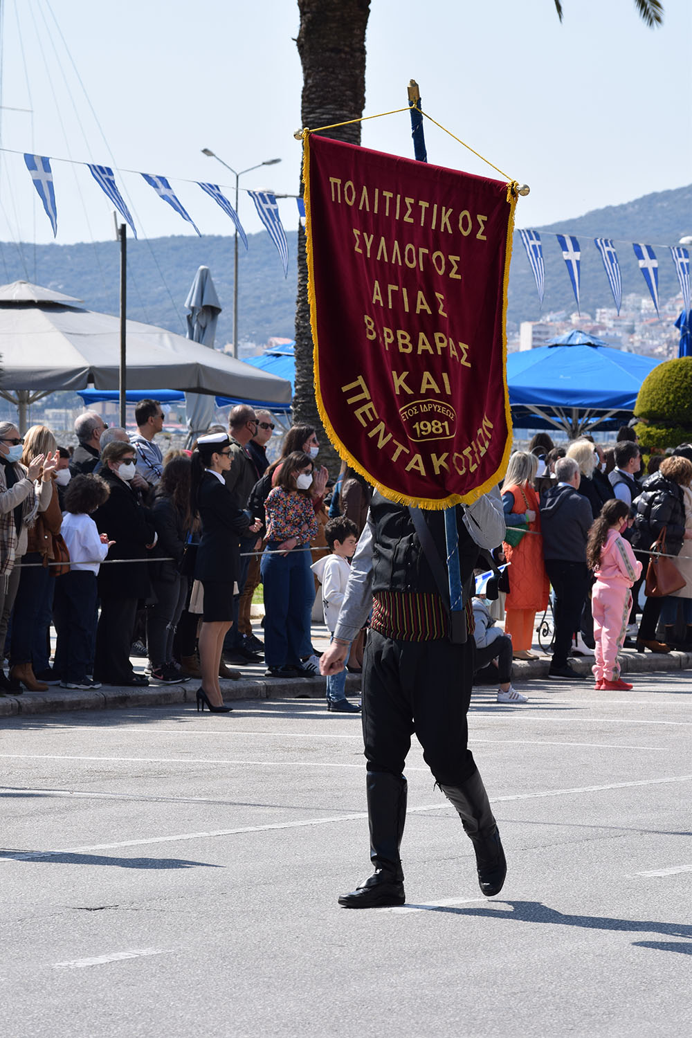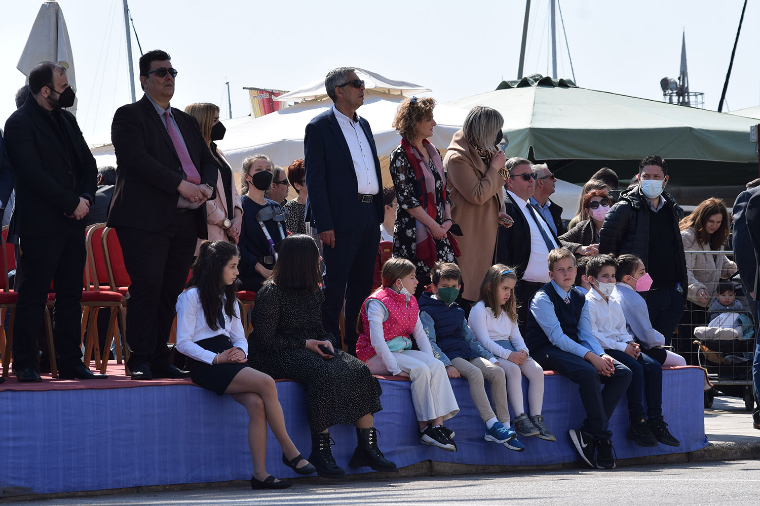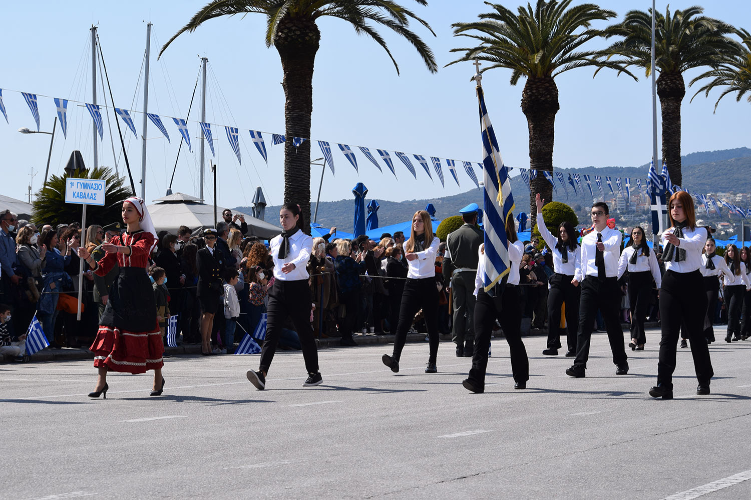 Με σύμμαχο τον καλό καιρό, και με δεδομένη τη χαλάρωση των περιοριστικών μέτρων για την αποτροπή της μετάδοσης του κορωνοϊού, δεκάδες ήταν οι Καβαλιώτες και οι Καβαλιώτισσες κάθε ηλικίας που έσπευσαν στην παραλιακή οδό της πόλης το πρωί της Παρασκευής για να παρακολουθήσουν από κοντά τη μαθητική και στρατιωτική παρέλαση που έλαβε χώρα στο πλαίσιο των εορτασμών για την εθνική επέτειο της 25ης Μαρτίου. Μια παρέλαση στην οποία πρώτα παρέλασαν οι μαθητές των σχολείων της Καβάλας και μετά οι πολιτιστικοί σύλλογοι (σε αντίθεση με τη συνηθισμένη πρακτική).