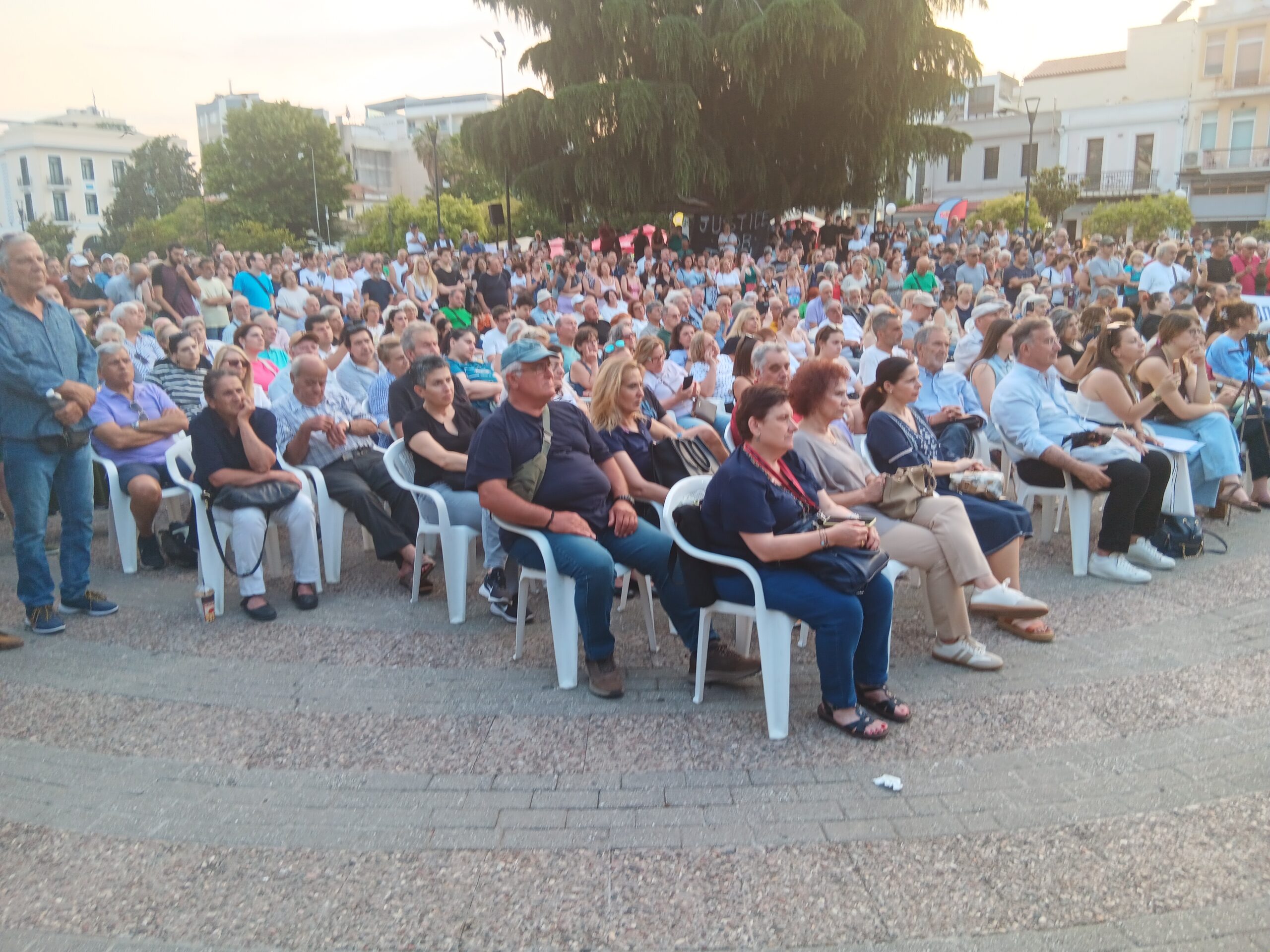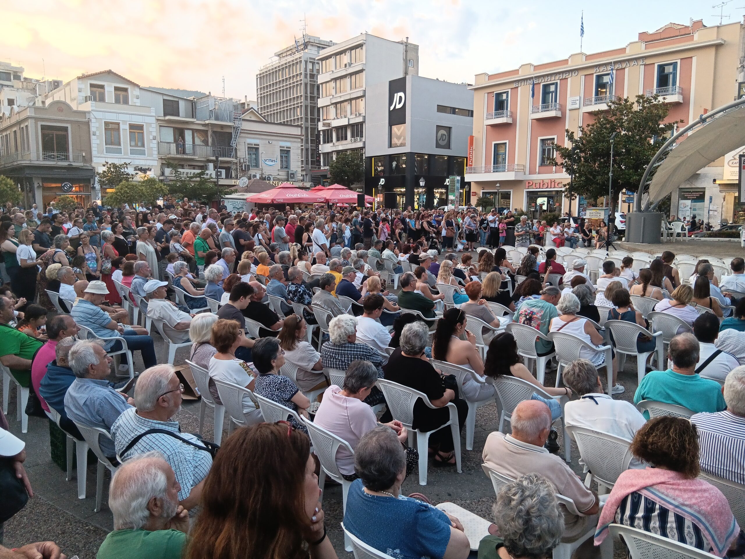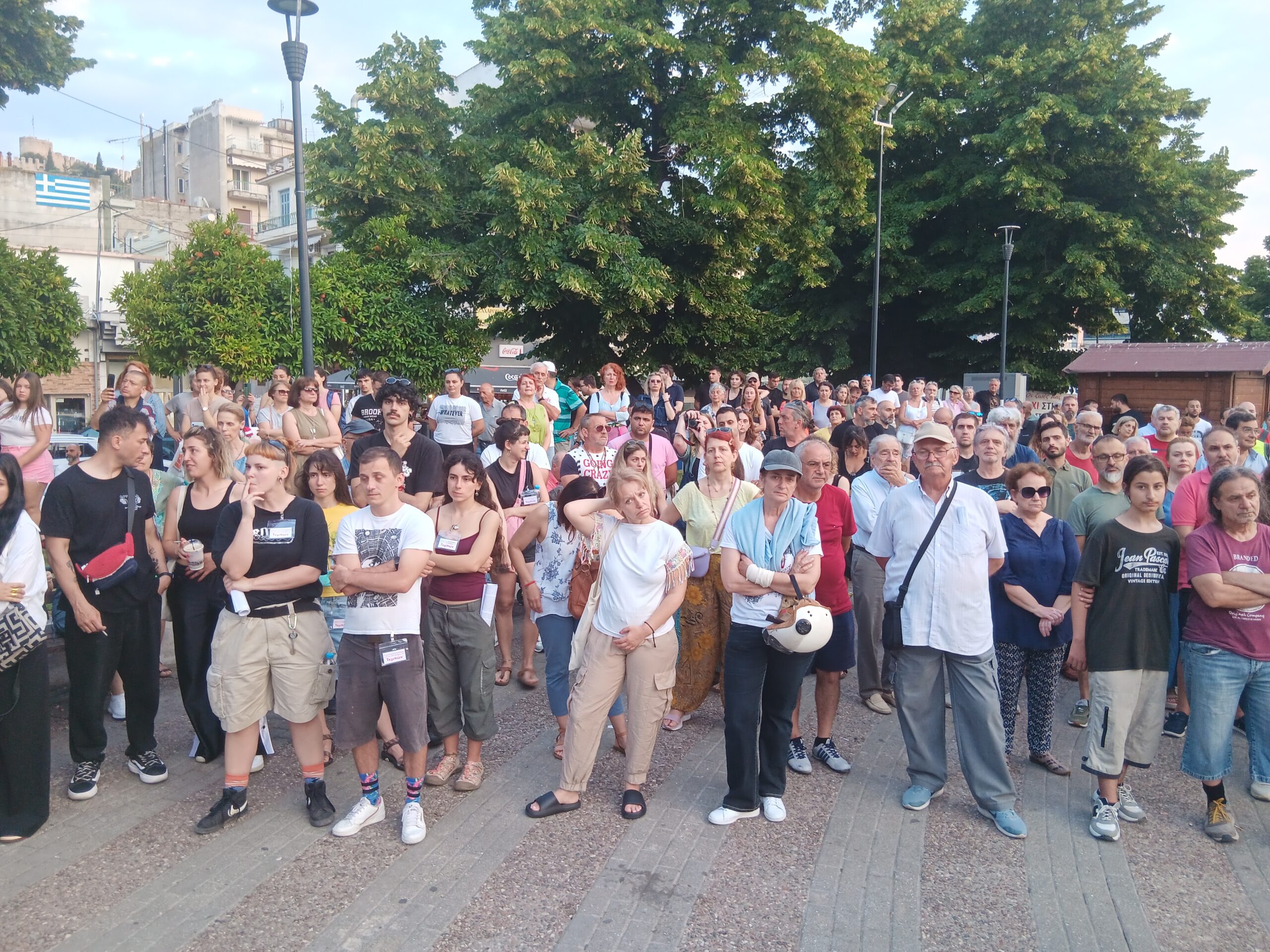 Πολύς κόσμος συγκεντρώθηκε, το απόγευμα της Παρασκευής 13 Ιουνίου 2025, στην κεντρική πλατεία της Καβάλας για να παρακολουθήσει την ανοιχτή εκδήλωση-συζήτηση που διοργάνωσε η Ανοιχτή Συνέλευση Καβάλας με θέμα την τραγωδία-έγκλημα των Τεμπών.