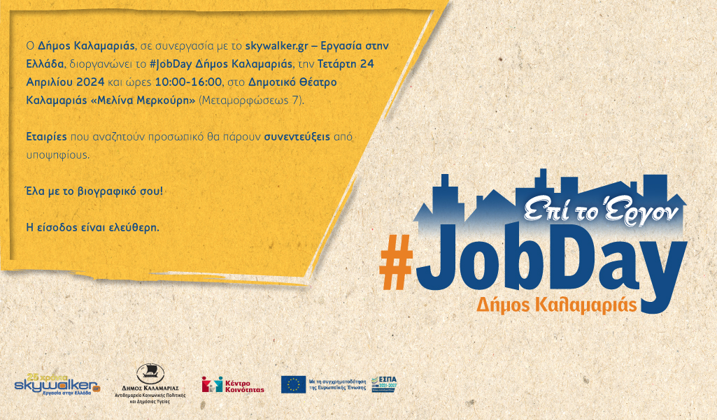 Για πρώτη φορά τo Skywalker.gr διοργανώνει το Σάββατο 7 Μαΐου με ταυτόχρονη πραγματοποίηση στις 13 πρωτεύουσες των Περιφερειών της χώρας μας το #JobDay Αφετηρία στο πλαίσιο της πρωτοβουλίας «Ξάδερφος Skywalker».