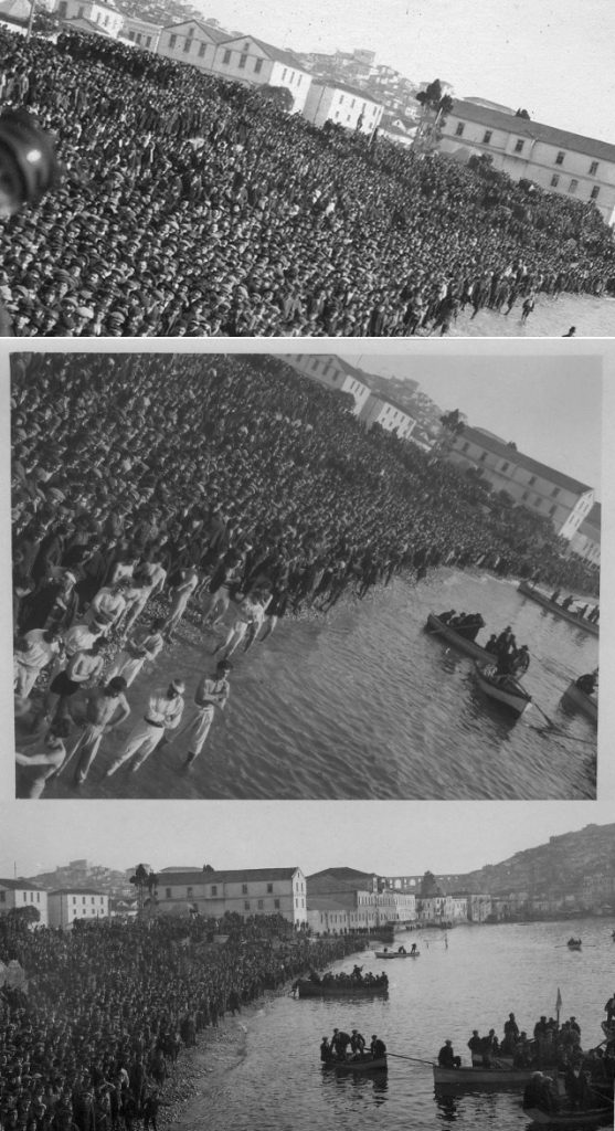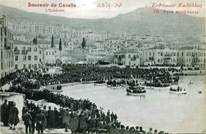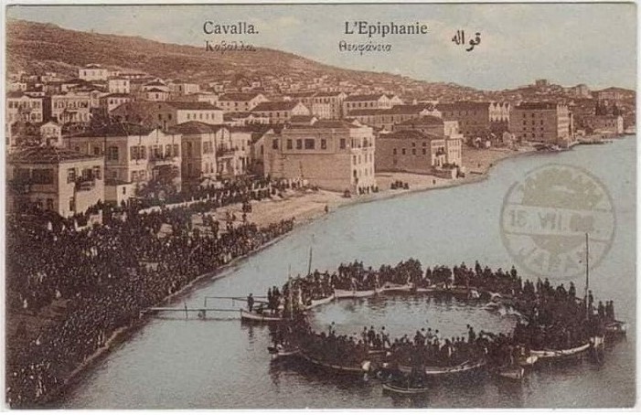 Σε σπάνιες φωτογραφίες που δημοσιεύτηκαν κατά καιρούς στην εφημερίδα “ΤΑΧΥΔΡΟΜΟΣ”, στο Αρχείο και Μουσείο της ΠΕΙΜ και στο Ιστορικό Λογοτεχνικό Αρχείο Καβάλας του αειμνήστου Νικολάου Ρουδομέτωφ, “ανακαλύπτουμε”, ότι η ρίψη του σταυρού και η τελετή γίνονταν μπροστά από τον Ιερό Ναό Τιμίου Προδρόμου.