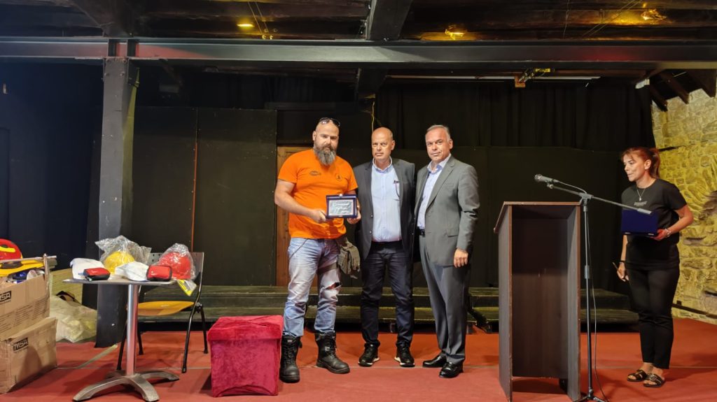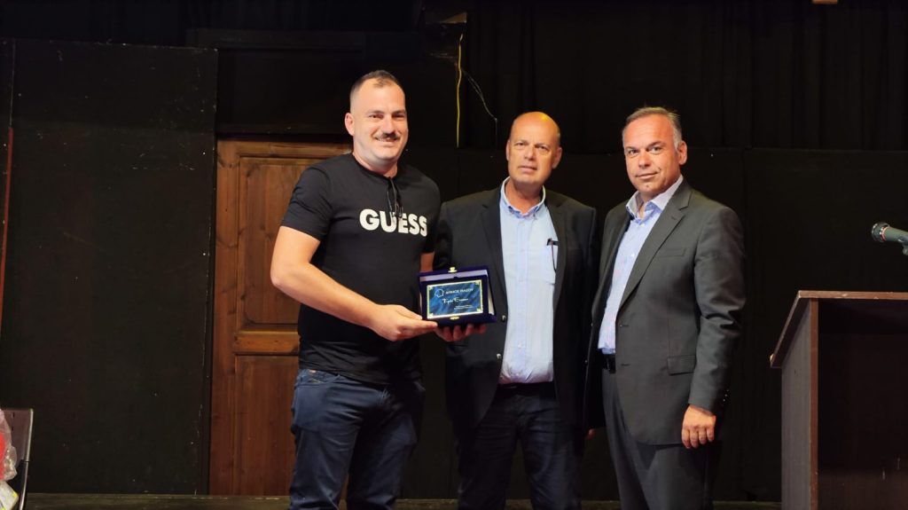 Κατά την εκδήλωση ο Δήμαρχος Θάσου και ο Πρόεδρος του Δημοτικού Συμβουλίου Θάσου κ. Δημήτριος Πιπίνης απένειμαν τιμητικές πλακέτες στους Πρόεδρους των ΔΣ του Συλλόγου Εθελοντών Πυροπροστασίας Πυρασφάλειας Ποταμιάς Θάσου κ. Κώστα Γιαννακούδη και του Συλλόγου Πυρασφάλειας Ραχωνίου – Αγ. Γεωργίου κ. Γεώργιο Γκέκα, αντίστοιχα.