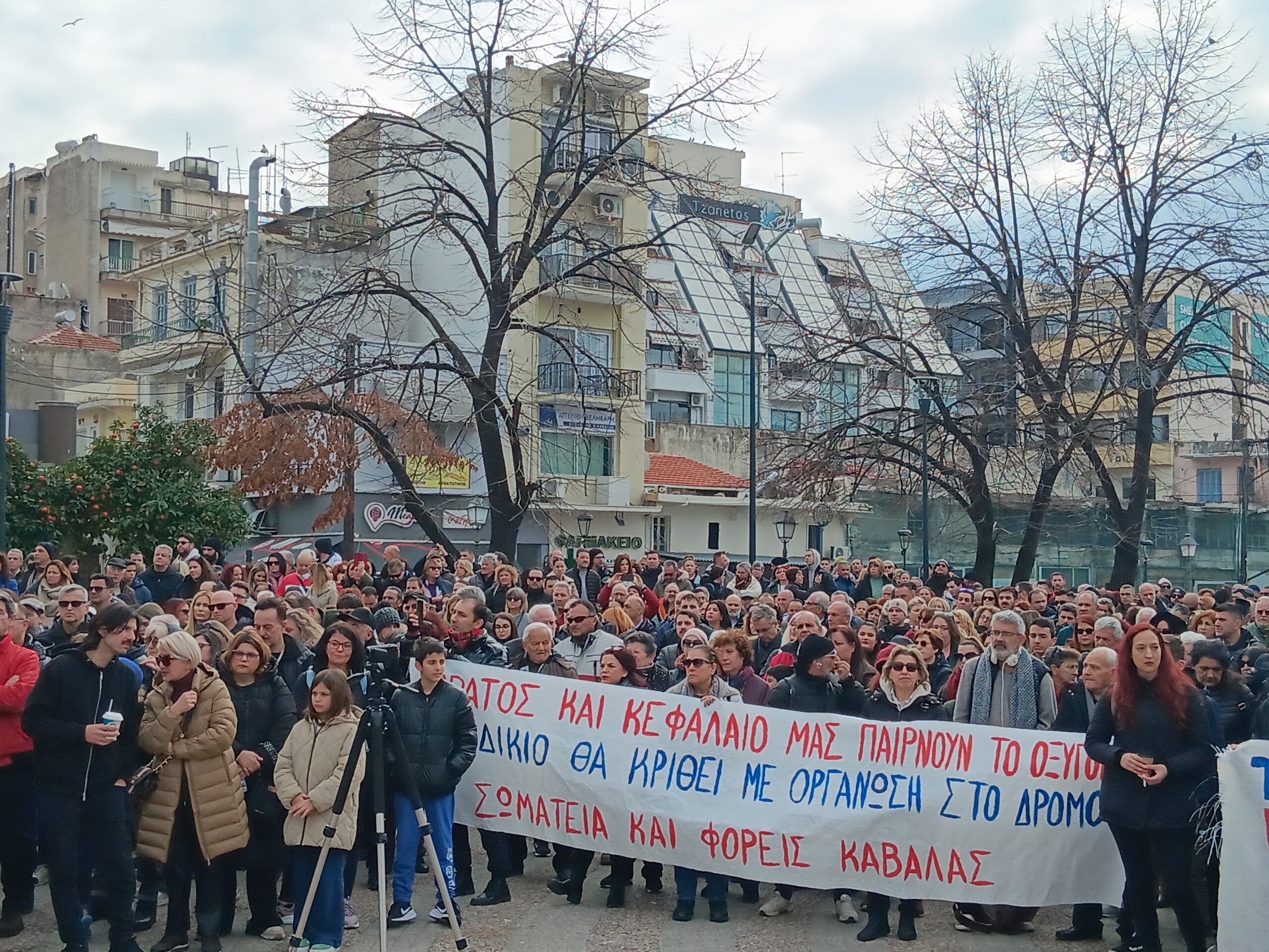 Σχεδον “γέμισε” η κεντρική πλατεία της Καβάλας από πολίτες κάθε ηλικίας που συγκεντρωθηκαν, το μεσημέρι της Κυριακής 26 Ιανουαρίου 2025, για να στείλουν το μήνυμα πως δεν ξεχνούν και δεν συγχωρούν όλους όσους ευθύνονται για την τραγωδία των Τεμπών, και πως απαιτούν δικαιοσύνη και τέλος στις όποιες προδπαθειες για συγκάλυψη.